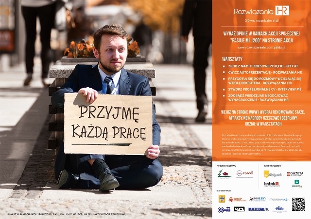 Celem zwrócenia uwagi uwagi na powyższy problem jest akcja informacyjna w formie plakatów oraz na dyskusja na fanpage"u do której zostaną zaproszone osoby związane z Podlaskim Rynkiem Pracy w tym przedstawiciele administracji, organizacji pozarządowych i pracodawcy. Plakaty informujące o akcji zawisły na terenie Białostockich uczelni i w szkołach średnich. Same plakaty przedstawiają osoby poszukujące pracy w wymownych pozach, scenerii i nośnym hasłach, mających sobą zwrócić uwagę i nie pozostawić obojętnym. Organizatorzy zachęcają do wzięcia udziału w dyskusji na fanpage"u. Za udział, przewidziane są nagrody rzeczowe, możliwość bezpłatnego udziału w warsztatach i wygrania renomowanych płatnych staży.