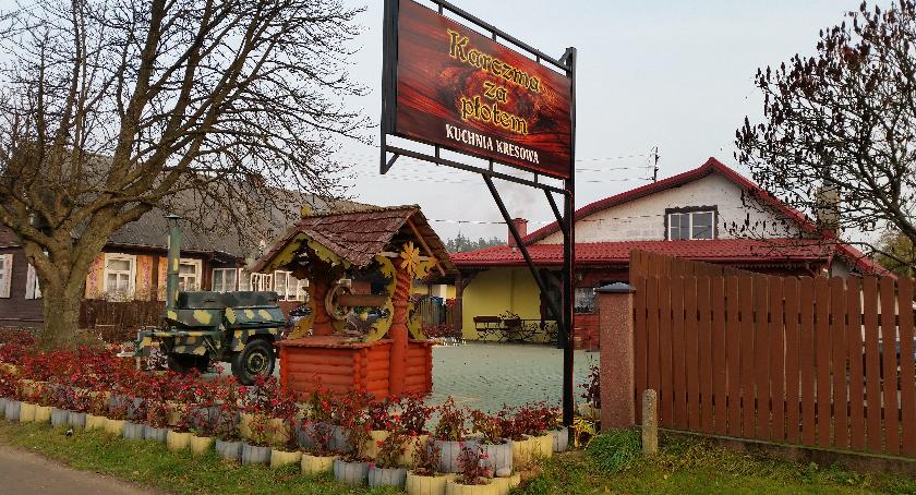 Od dłuższego czasu irytowało i zarazem ciekawiło nas, co też się dzieje za płotem, a raczej w „Karczmie za Płotem”. Jeździło się i tu i tam, ale jakoś zawsze wygrywał Max ze swoją świńską giczą. Do czasu. Tym razem brak miejsc i dokuczający już głód spowodował szybką i jednogłośną decyzję. „The winner is…” – Karczma za Płotem! Jedziemy. Lokal ten jest położony w sąsiedztwie, bo zaledwie kilkanaście kilometrów od Białegostoku, tuż przy głównej drodze, więc przemieszczenie się nie zajęło nam dużo czasu. „Nam” – gdyż tym razem skład był mocny i zwarty czego dowodem był emerytowany stoper naszej Jagi na pierwszym siedzeniu „srebrnej strzały”. I tak oto słynny „Lis” zamiast golony w Maxie opędzluje pyszną karkówkę „Za płotem”. Ale po kolei.