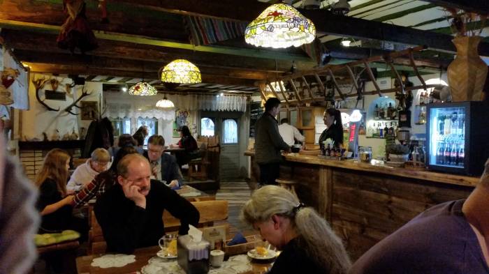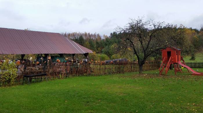 Nie da się ukryć, że na plus zapracowało także wnętrze lokalu, niezbyt duże na pierwszy rzut oka, ale niesamowicie przytulne. Przypominające starą wiejską chatę, wszystko w drewnie, na ścianach rękodzieła i stare obrazy. Normalnie tylko siadać do stołu i brać litra. Niestety, albo i stety, tym razem członkowie ekspedycji zachowali w miarę umiarkowaną trzeźwość. Ekstrema nas nie interesuje. I jak wspomnieliśmy, lokal pozornie duży nie jest, ale jak się okazuje posiada drugą salę tzw. Bankietową. Na terenie przyległym do karczmy znajduje się ogród rekreacyjny z miejscem do zabaw dla dzieci, mini skansenem czy polem do siatkówki. Po krótkiej wizytacji przeszliśmy do głównego zadania tego popołudnia, czyli do konsumpcji.