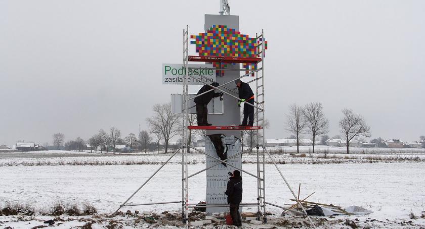 Kierowcy na pewno zwrócą na niego uwagę, bo jest kolorowy i duży. Zasilany naturą, wielobarwny i przykuwający wzrok – nowy witacz województwa podlaskiego pojawił się na trasie S – 8.