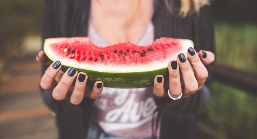 Arbuzy dostępne w całości należy koniecznie dobrze sprawdzić przed zakupem. Najpierw zwróćmy uwagę na skórkę – prążki powinny być równomierne, bez plam i dużego kontrastu, o wyraźnie zaznaczonych kolorach. Dobry arbuz nie powinien mieć żadnych wgnieceń ani uszkodzeń na powierzchni – twarda skórka po naciśnięciu kciukiem nie powinna się uginać. Jaśniejsza plama na spodniej stronie owocu to pozostałość po miejscu, w którym arbuz leżał na ziemi. Powinna być ciemnożółta – im bardziej intensywny kolor, tym owoc jest świeższy. Oznacza to również, że arbuz zawiera cenny likopen. Ten ważny przeciwutleniacz wpływa na zmniejszenie ryzyka zawałów serca, a także zapobiega rozwoju nowotworów.