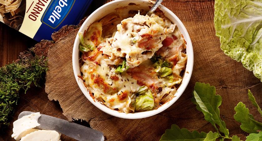 PRZYSMAK PODLASKI: Zapiekanka z makaronem Lubella Pełne Ziarno Gniazda Wstążki z kapustą i serem korycińskim
