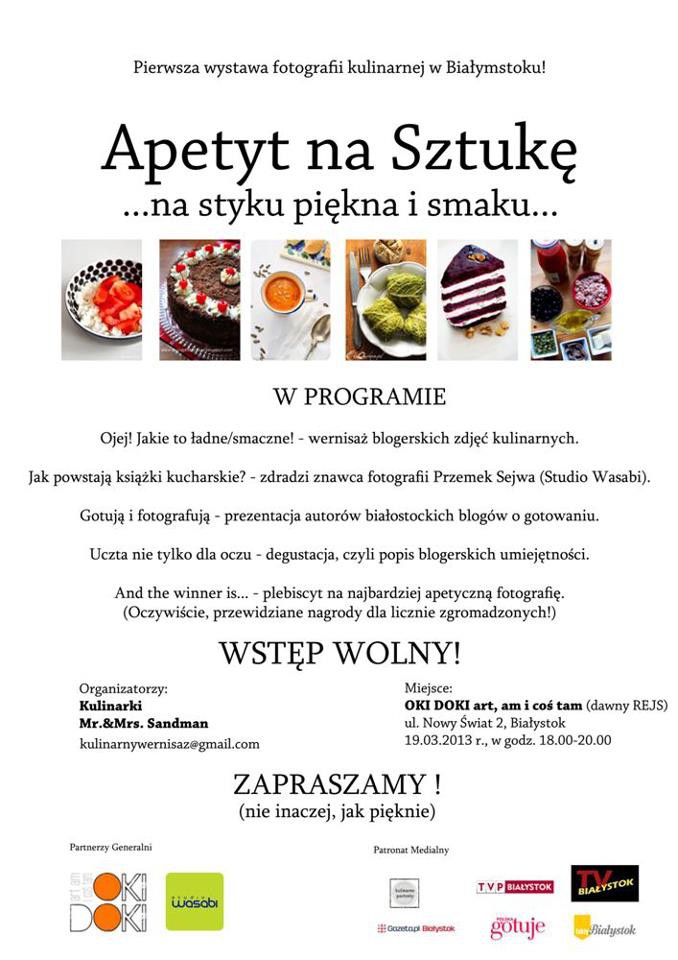 19 marca o 18.00 odbędzie się wernisaż pierwszej w Białymstoku wystawy fotografii kulinarnej "Apetyt na sztukę”.