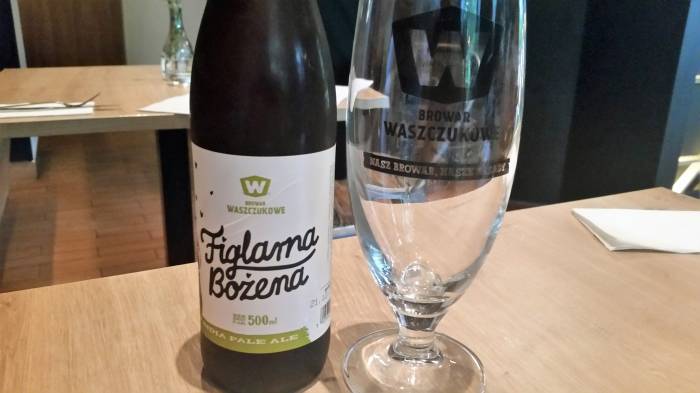 Co do picia? Nie byliśmy tego dnia zmotoryzowani, więc postawiliśmy na piwo. W Świętojańskiej 21 nie znajdziemy złocistego napoju produkowanego przez wielkie koncerny piwowarskie. Za to są produkty dostarczane przez Browar Waszczukowe z Czarnej Białostockiej i Browar Markowy z Hajnówki. Naszym zdaniem to dobry ruch, który nadaje restauracji wyjątkowości. Piliśmy m.in. Figlarną Bożenę z mocno wyczuwaną goryczą i gruszką. Spróbujcie, to smak, którego nie znajdziecie na większości sklepowych półek.