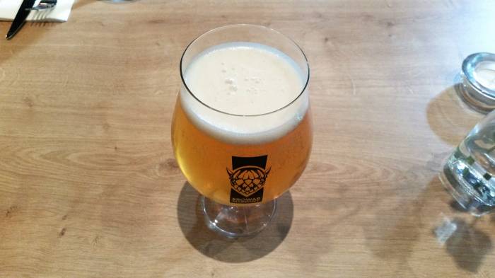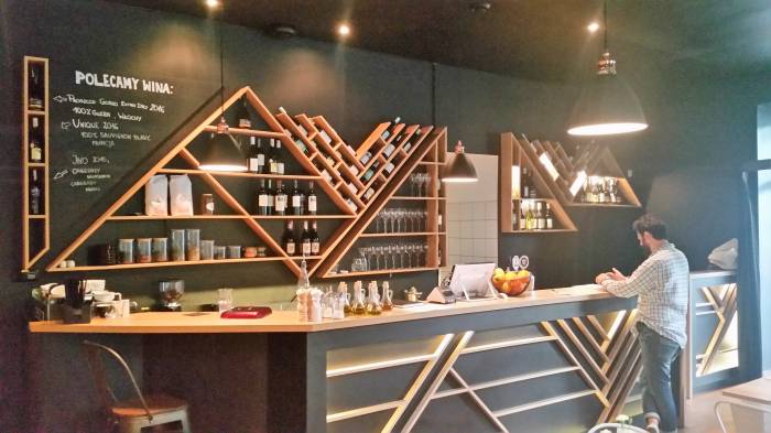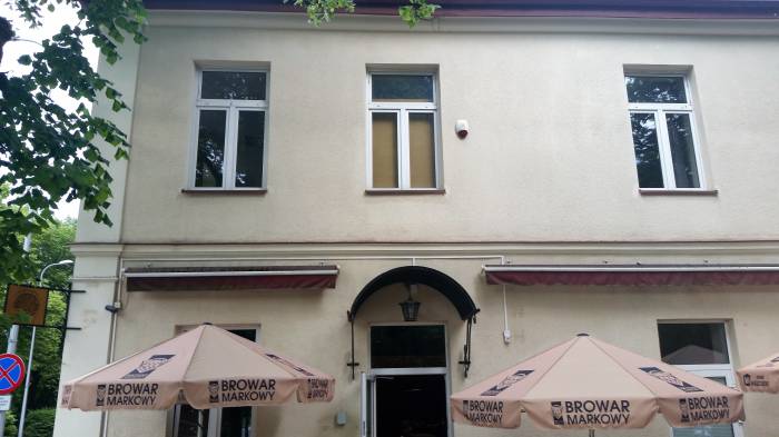 Na zewnątrz prezentuje się dość skromnie, a zwraca uwagę parasolami z logami browaru rzemieślniczego z naszego regionu. W środku, naprzeciwko wejścia, mamy ścianę z cegieł. Taki industrialny klimat - genialne posunięcie. Niestety pomalowane na czarno pozostałe ściany pomniejszają optycznie wnętrze; jest dość ciemno, czego nie ratują zapalone światła. Na stolikach za to bez zbędnego przepychu i obecności niefortunnych dekoracji.