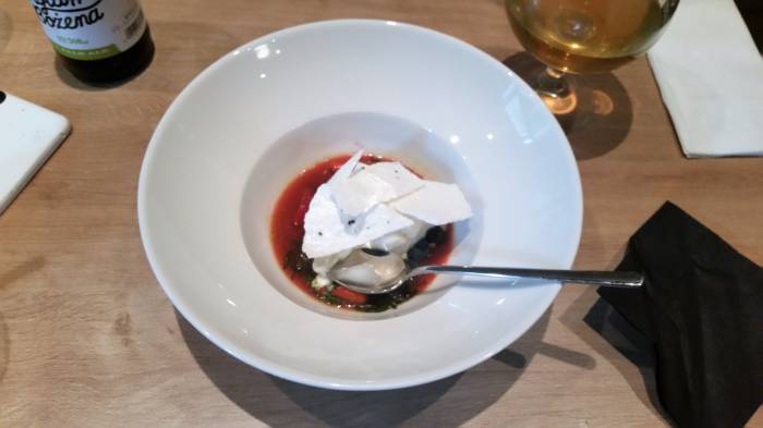 Przywitaliśmy się z szefową kuchni. Poleciła nam pizzę, z której Świętojańska słynie. Ta, w stylu neapolitańskim, przygotowywana jest z ciasta na zakwasie, poddanego spowolnionej fermentacji, z pomidorów San Marzano DOP i świeżej mozarelli. Wypiekana jest w piecu opalanym drewnem w temperaturze powyżej 450 stopni Celsjusza, co skraca czas pieczenia, a pomidory i dodatki zachowują smak i wartości odżywcze, na cieście pojawiają się charakterystyczne czarne kropki, a środek pizzy jest mokry.
